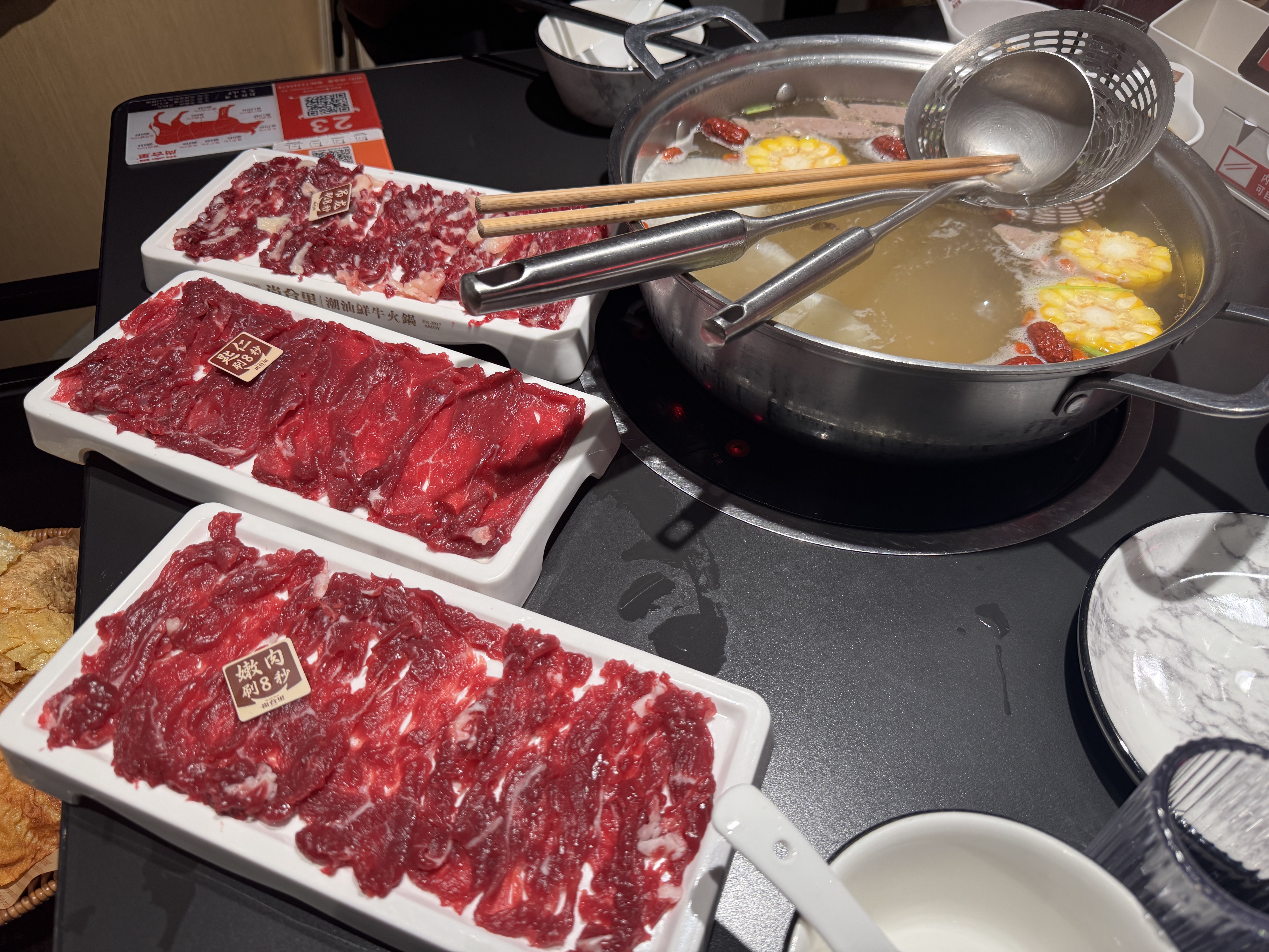 邊吃潮汕牛肉火鍋邊感嘆人生。人均不到HKD$100,划算得像是運動員福利。