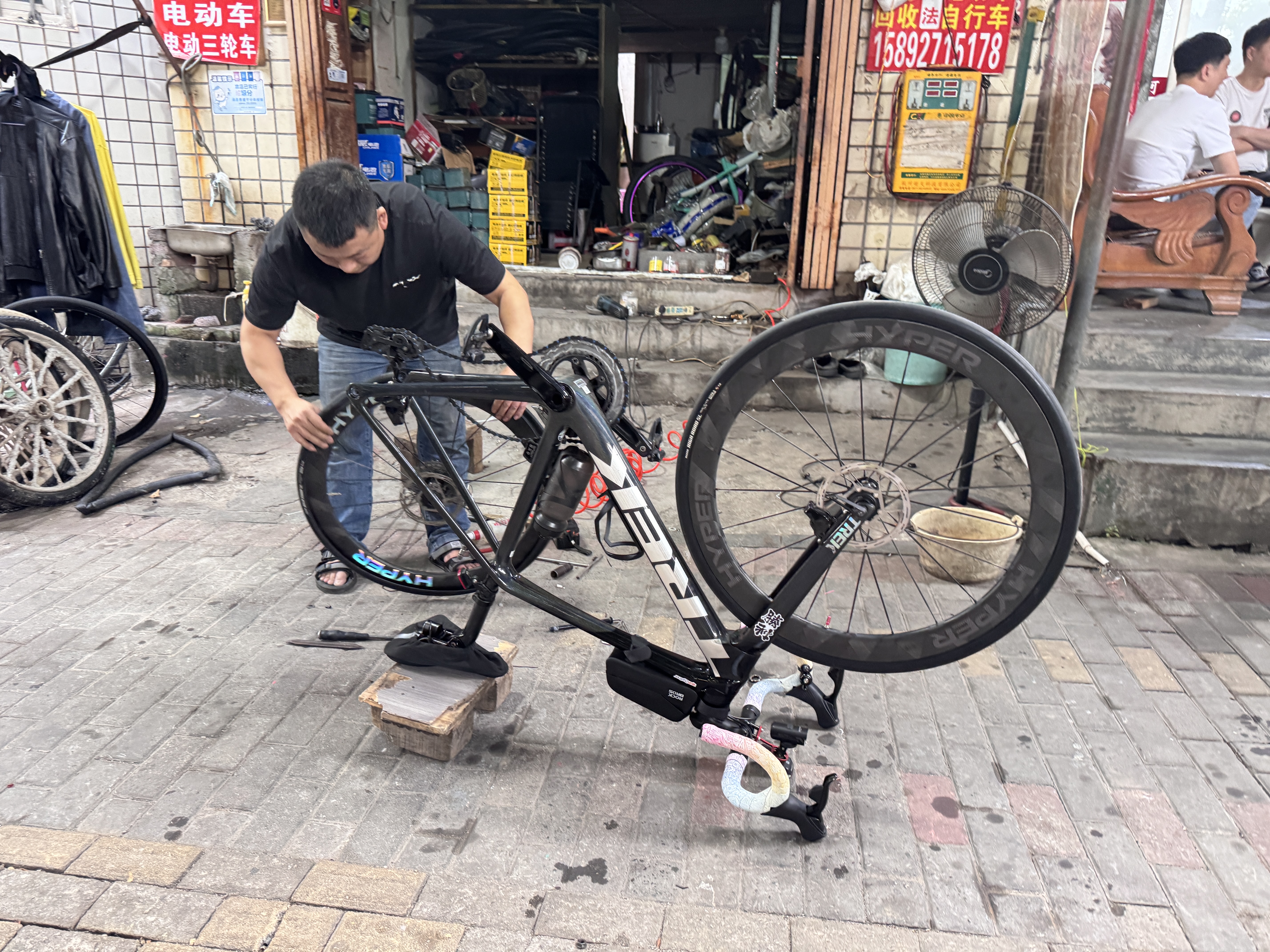 幸好是在試車時發生,不然比賽變退賽。我立刻打開手機叫了「貨拉拉」——感謝這位鐵人背後的物流英雄——送我去最近的單車店修理。