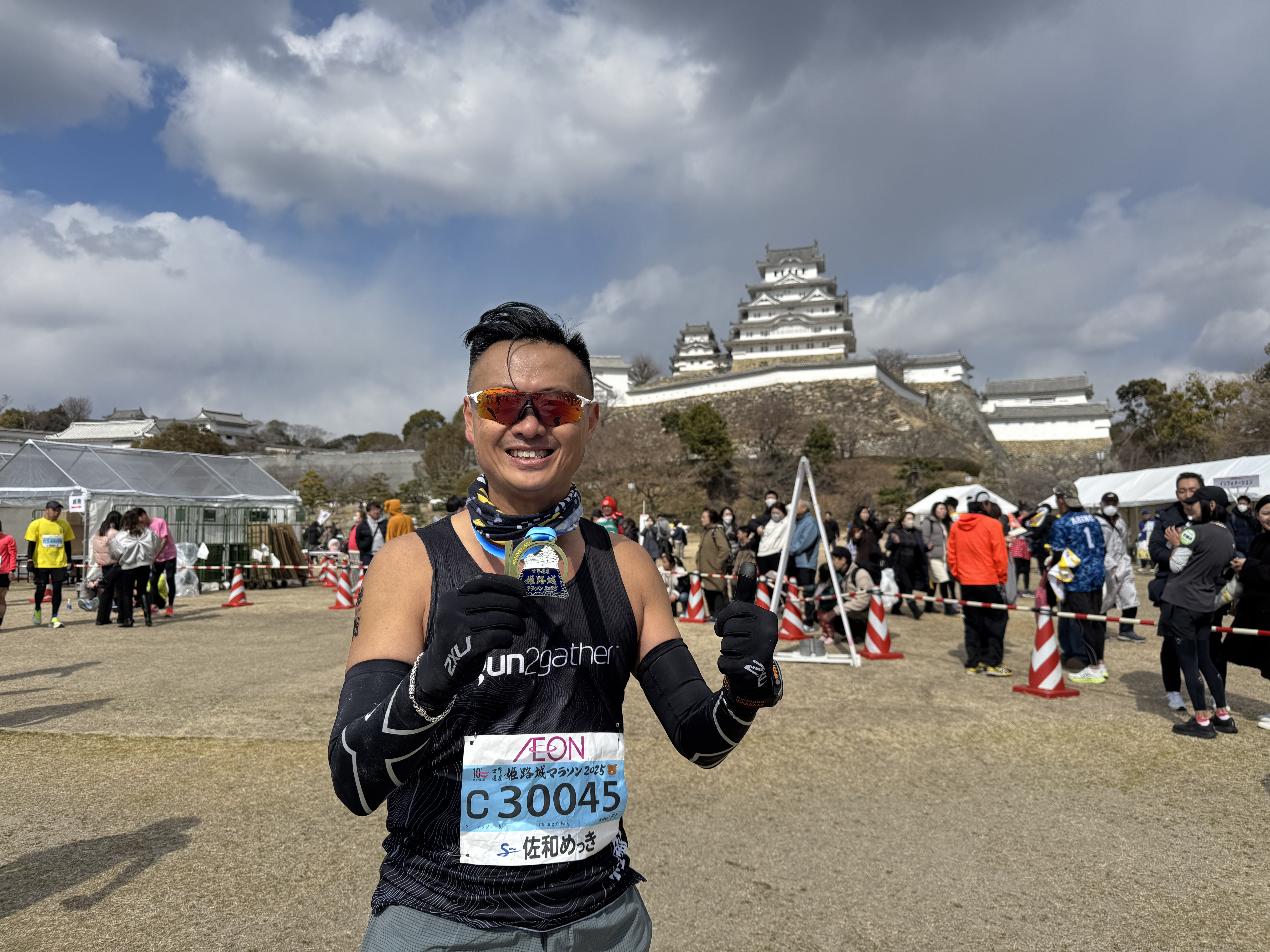 比賽當天氣溫僅一度,冷得連骨頭都透風。我穿著背心短褲,外面加了件便利雨衣,硬著頭皮前往起跑點。姬路城馬拉松的賽道平坦親民,天氣冰冷,讓我一不小心就在頭段跑得太快。然而,25公里後的我就開始「崩盤」了,懷疑人生的同時,幸好遇到熱情居民遞上的私補可樂。平時不喝可樂的我,這次喝了四杯,甜甜的碳酸拯救了我的靈魂!最終,我用3:49:57完成了比賽,衝過姬路城大門的那一刻,所有痛苦都化為成就感。