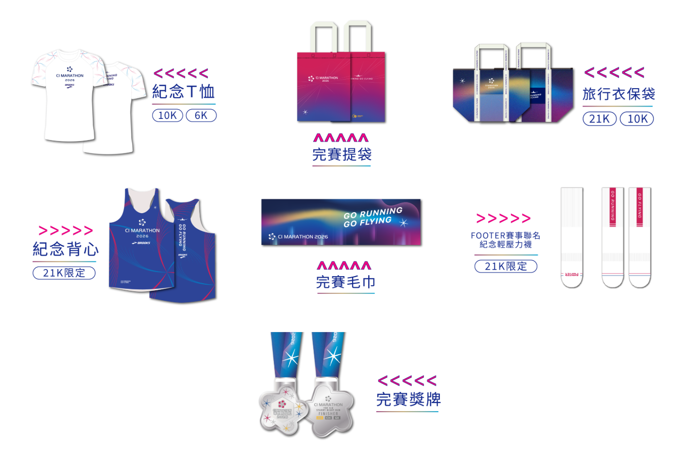 2026華航馬拉松以「Run the World with China Airlines」為核心理念, 延續「GO RUNNING GO FLYING 即刻開跑 夢想起飛」的品牌精神。 本屆賽事不僅是一場路跑, 更是一場結合「航空品牌特色」、「永續實踐」與「運動社交」的夜跑派對。 透過星光夜跑的獨特氛圍,打造亞洲區星光馬拉松第一品牌, 象徵華航作為「連結世界的橋樑」。